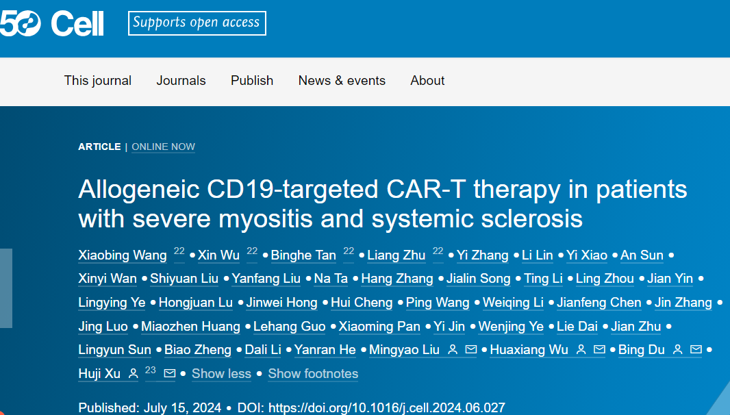 文献分享| Cell:通用型CAR-T细胞在自身免疫性疾病上的首次成功应用